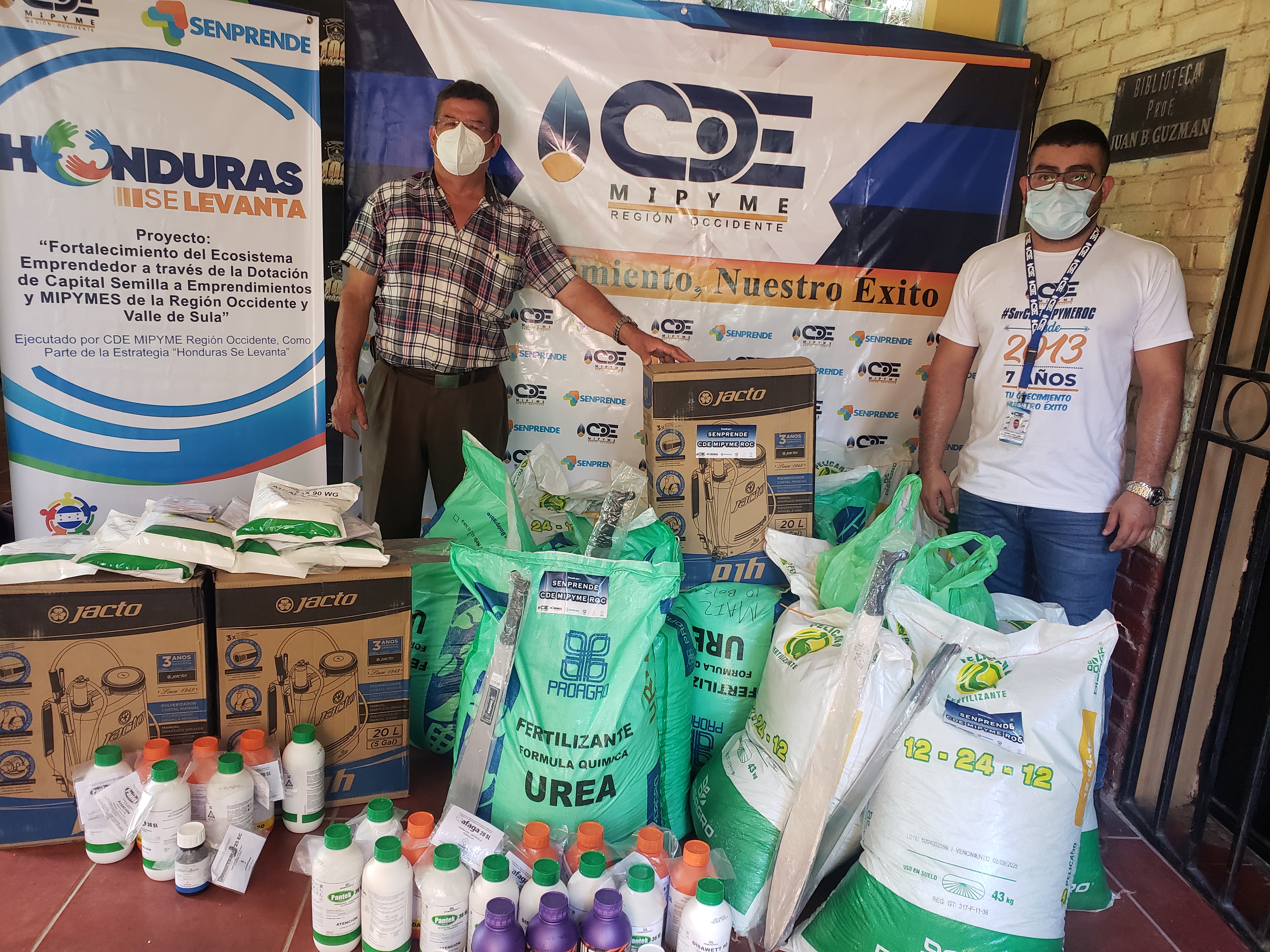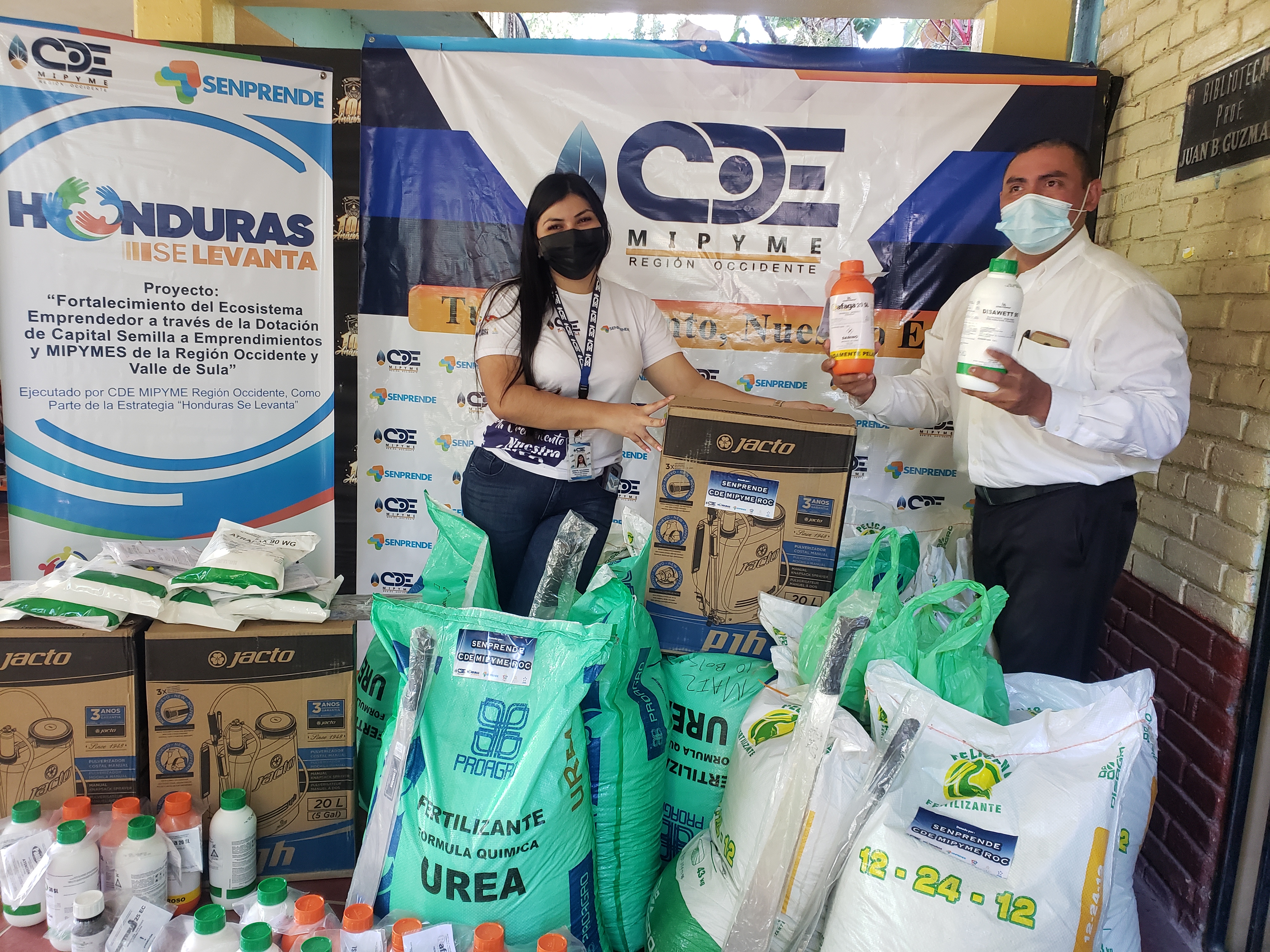 El CDE MIPYME Región Occidente, mediante el proyecto “Fortalecimiento del sector Empresarial y Emprendedor de la Región Occidente y Valle de Sula a través de asistencia Técnica y Dotación de Capital Semilla”, en el marco de la estrategia Honduras se Levanta, financiado por el Gobierno de la Republica a través del Servicio Nacional de Emprendimientos y Pequeños Negocios (SENPRENDE), desarrolla Evento de Entrega de Kits Productivos a beneficiarios en el departamento de Ocotepeque con el objetivo de contribuir a la reactivación de la economía local, así como fortalecer las capacidades productivas y de gestión del sector empresarial y emprendedor.